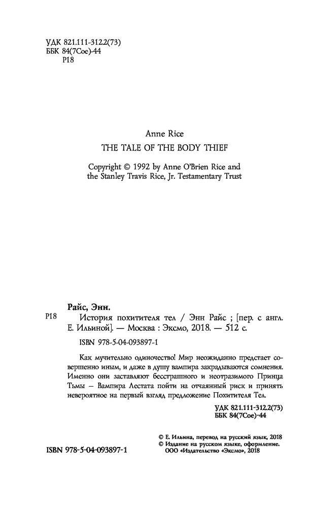 История похитителя телВ данный момент этот товар отсутствует в продаже. Возможно, у нас найдется аналогичный или похожий товар здесь. Серия: Европокет. Вампирские хроники Как мучительно одиночество! Мир неожиданно предстает совершенно иным, и даже в душу вампира закрадываются сомнения. Именно они заставляют бесстрашного и неотразимого Принца Тьмы — Вампира Лестата пойти на отчаянный риск и принять невероятное на первый взгляд предложение Похитителя Тел. |