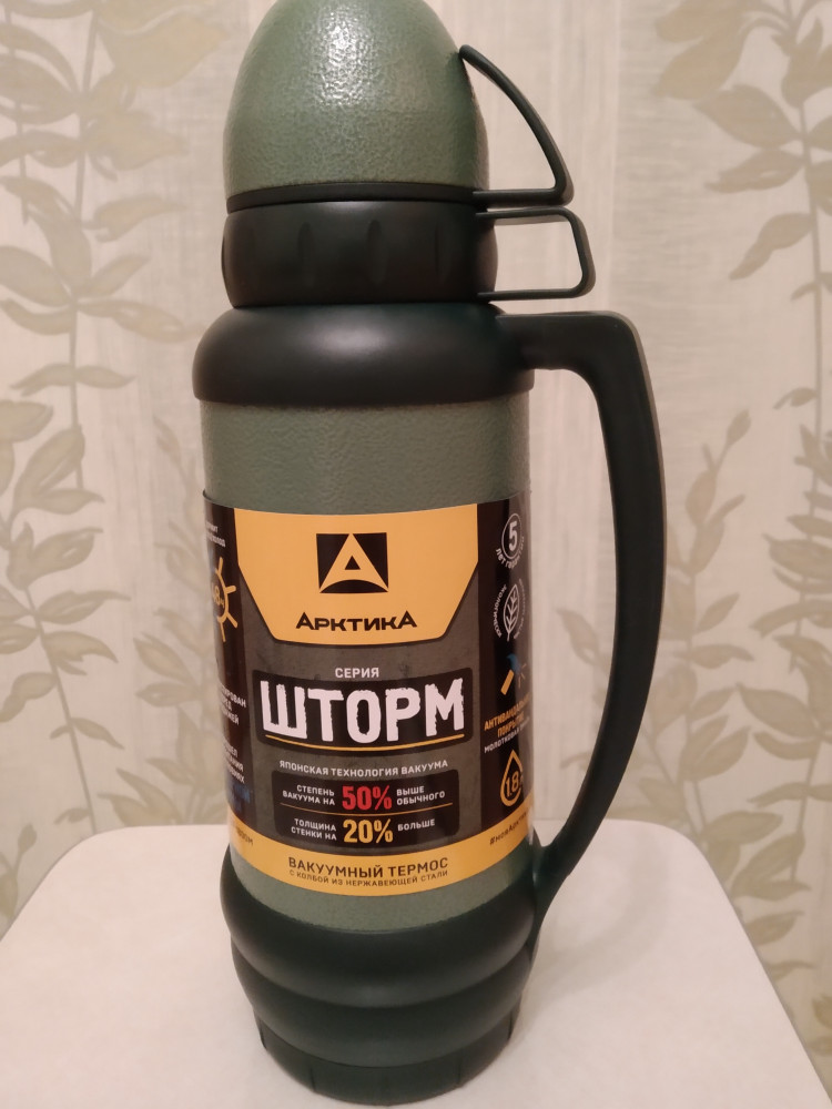 Большой, вместительный термос «Шторм» создан, чтобы наполнить теплом всю компанию. Поэтому в комплекте не одна, а две объемных кружки. Чай станет вкуснее, если разделить его с товарищем.