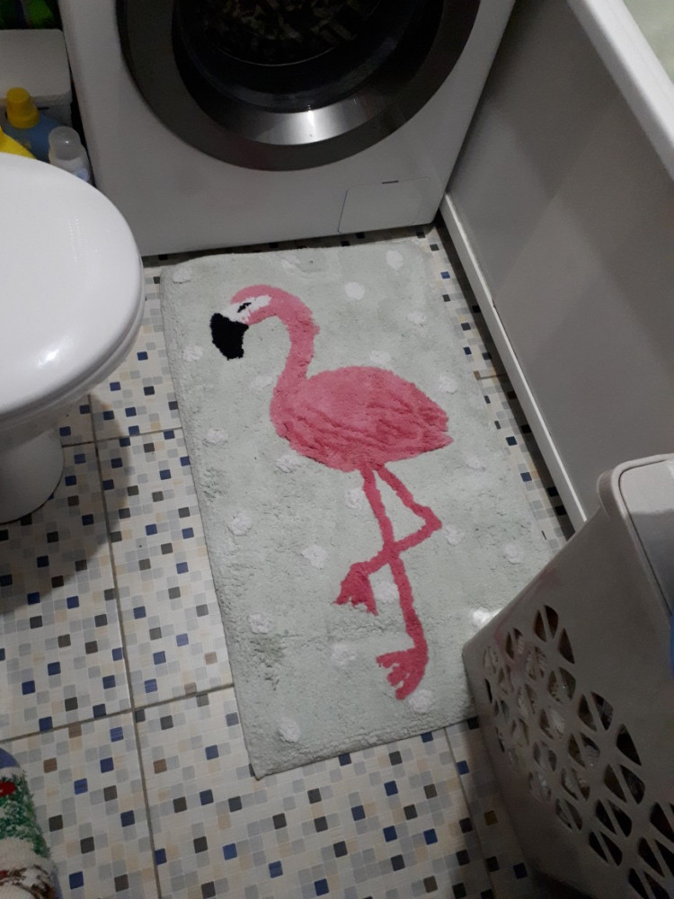Коврик очень понравился. Правда заказала с бабочками, а принесли с фламинго. Но с фламинго тоже классный. Так что если вам надо именно ту картинку, которую заказали, лучше пишите в комментариях заранее. По качеству коврик просто супер- мягкий, приятный для ног. Его будет удобно стирать. Теперь вот заказала ещё пару ковриков с бабочками, с уточнениями. Чтобы была замена.