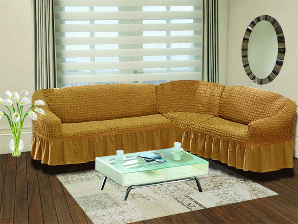 Чехол для углового правостороннего дивана (2+3 посадочных места, горчичный) | Bulsan