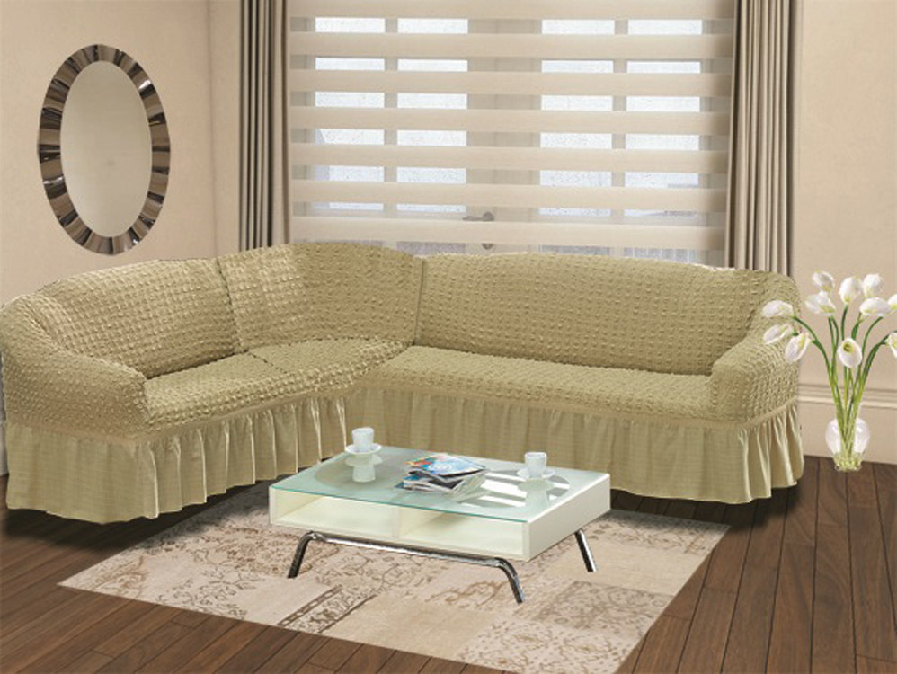 Чехол для углового левостороннего дивана (2+3 посадочных места, бежевый) | Bulsan