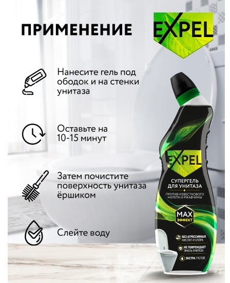 EXPEL Средство для чистки унитаза, соединенного с септиком против известкового налета и ржавчиныВ данный момент этот товар отсутствует в продаже. Возможно, у нас найдется аналогичный или похожий товар здесь. Средство для ликвидации и предотвращения засоров от волос в системах домашней канализации. Специально разработанная рецептура содержит кристллический активный компонент, который в комбинации с активирующей добавкой быстро разрушает волосяную пробку и устраняет засор. Устраняет сложные засоры от спутанных волос. Без хлора. Безопасно для труб. |