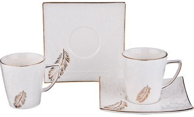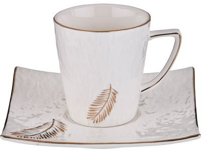 Главная особенность данного набора заключается в великолепном однотонным дизайне с элегантным рельефным узором. Этот кофейный набор будет одинаково хорошо будет смотреться и на праздничном столе, и на обычном обеденном! Аккуратные чашечки и блюдца к ним, выполнены из высококачественного фарфора, поэтому несмотря на свою внешнюю хрупкость, они отличаются легкостью, практичностью и эстетичностью.