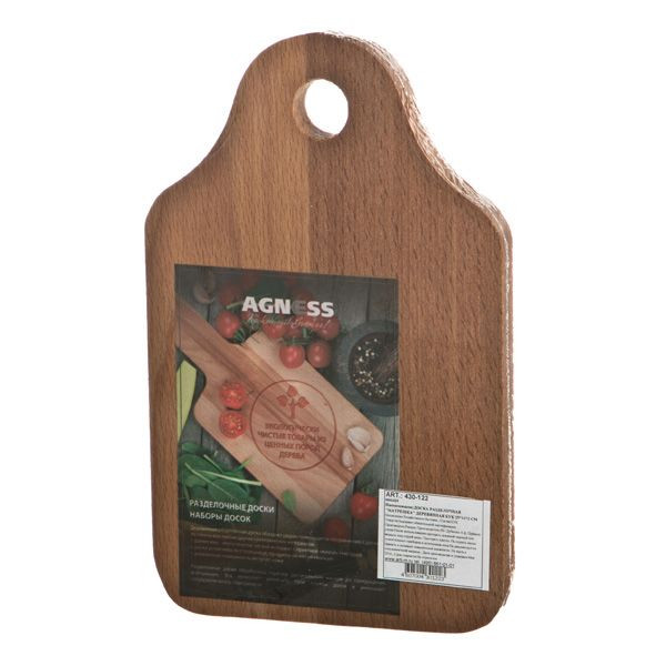 Доска разделочная Agness сделает приготовление пищи ещё более простым и комфортным. С ней вы сможете быстро нарезать все необходимые ингредиенты для того или иного блюда, не повредив при этом поверхность стола.