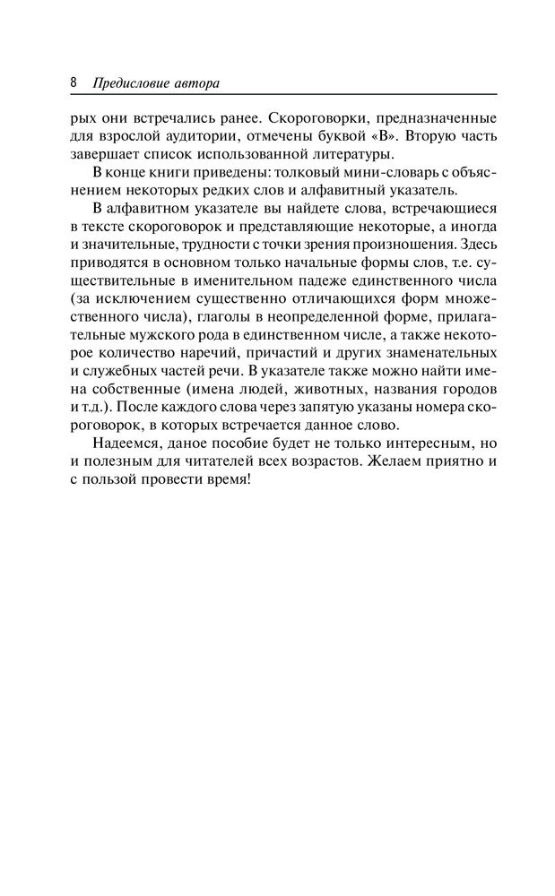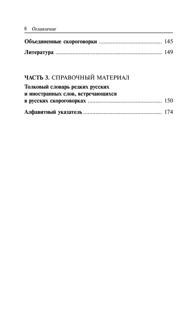 • алфавитный указатель слов, встречающихся в скороговорках.