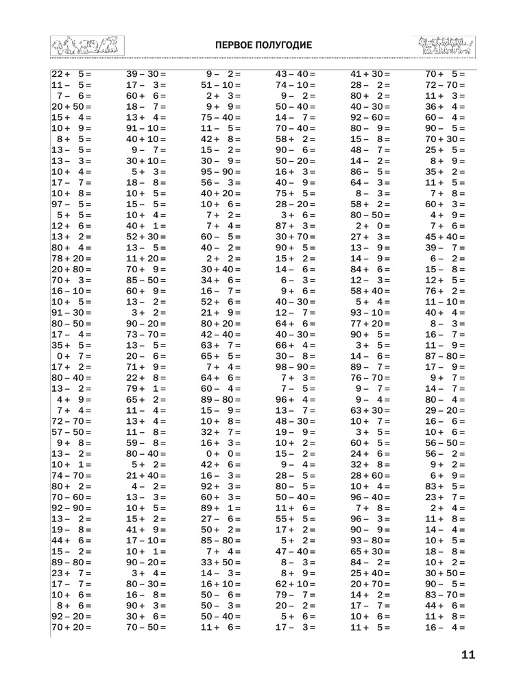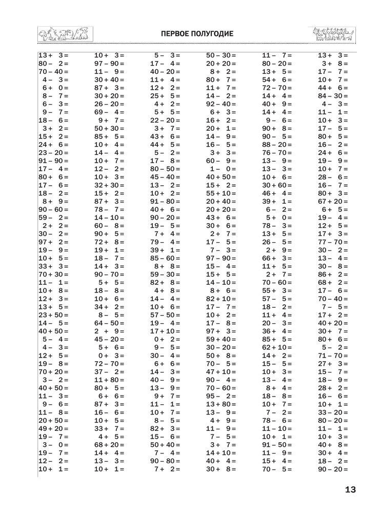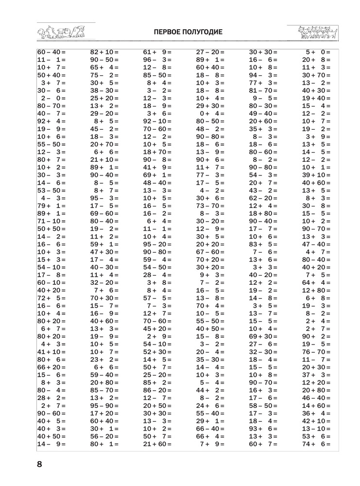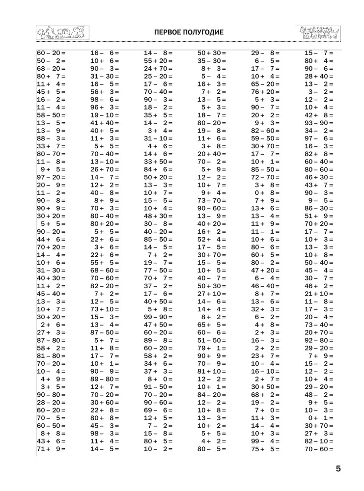 💳 Оплатить за товар можно при получении 🇰🇿 Есть бесплатная доставка по Казахстану от 1 дня 🎁 Копите бонусы с каждой покупки Серия: 3000 примеров Пособие содержит 30 000 математических примеров по темам, изучаемым во 2 классе. Оригинальное построение материала позволяет обеспечить более глубокое его усвоение. Как показывает практика, ученик полностью освоил программу, если решает пример и записывает ответ по истечении 4 — 7 секунд. В этом случае можно говорить, что навык счета доведен до автоматизма. На каждой странице приведены 6 столбиков по 52 примера. Если ученик решает столбик за 4 — 6 минут, это свидетельствует о хорошем уровне подготовки. На целую страницу у него должно уходить не более 30 минут. Чтобы достичь отличных результатов, каждый день следует решать по одной странице. Пособие может быть использовано на уроках математики, а также для работы дома. |