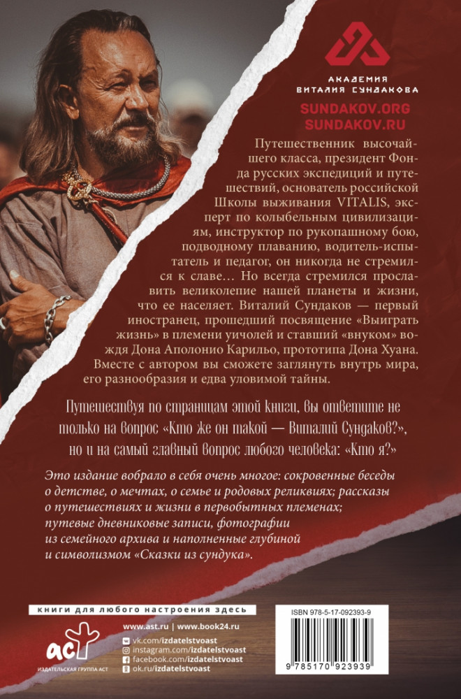 Выиграть жизнь. Сказки из сундукаВ данный момент этот товар отсутствует в продаже. Возможно, у нас найдется аналогичный или похожий товар здесь. Серия: Академия Виталия Сундакова Приглашаем наших читателей в увлекательный мир путешествий, инициаций, тайн, в загадочную страну приключений, где вашими спутниками будут древние знания и современные открытия. Виталий Сундаков — первый иностранец, прошедший посвящение «Выиграть жизнь» в племени учителей и ставший «внуком» вождя Дона Аполонио Карильо, прототипа Дона Хуана. Автор книги раскрывает как очевидец и посвященный то, о чем Кастанеда лишь догадывался, синтезируя как этнолог и исследователь древние об- ряды и ритуалы в жизни современных индейских племен. Вы также встретитесь с первобытными племенами, затерянными в джунглях Амазонии и в горах Ириан-Джаи, побываете в безжизненных пустынях и таинственных Гималаях, монастырях и храмах Бирмы, Бутана, Египта, Филиппин и т.д. Вместе с автором вы сможете заглянуть внутрь мира, его разнообразия и едва уловимой тайны. Книга проиллюстрирована рисунками и фотографии из личного архива Виталия Владимировича Сундакова и рассчитана на самый широкий круг читателей. |