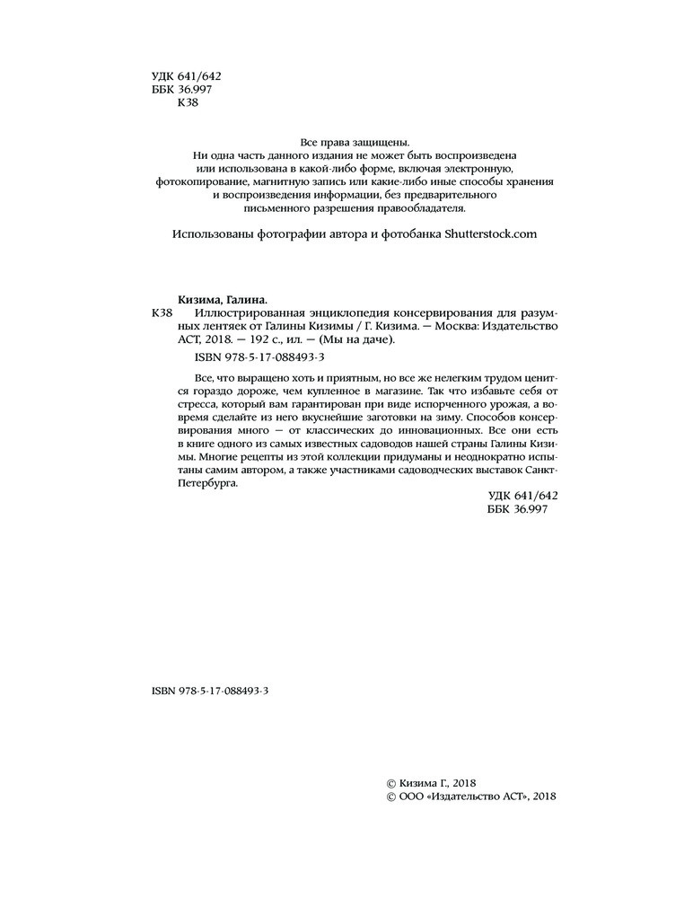 Иллюстрированная энциклопедия консервирования для разумных лентяек от Галины КизимыВ данный момент этот товар отсутствует в продаже. Возможно, у нас найдется аналогичный или похожий товар здесь. Серия: Мы на даче Способов консервирования много — от классических до инновационных. Все они есть в книге одного из самых известных садоводов нашей страны Галины Кизимы. Многие рецепты из этой коллекции придуманы и неоднократно испытаны самим автором, а также участниками садоводческих выставок Санкт-Петербурга. |