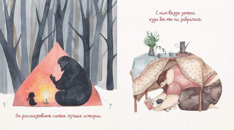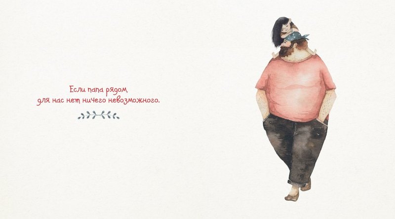 Папа рядомВ данный момент этот товар отсутствует в продаже. Возможно, у нас найдется аналогичный или похожий товар здесь. Книга об особых отношениях между отцом и дочерью. Независимо от того, играют ли они, смешат вас или прогоняют монстров из-под кровати, папы всегда там, где они вам нужны. «Серия иллюстраций о папе с дочкой появилась в сложный период моей жизни, когда я чувствовала себя слабой и одинокой. Я не знала, как жить и что делать дальше, а все вокруг советовали заняться чем-нибудь серьёзным. Я не чувствовала опоры. И вот я придумала себе папу — огромного, доброго, любящего защитника, для которого нет ничего невозможного. Я специально нарисовала его большим, намного больше дочки, потому что именно таким она его видит, именно такими нам кажутся герои и наши родители», — признается автор книги. |