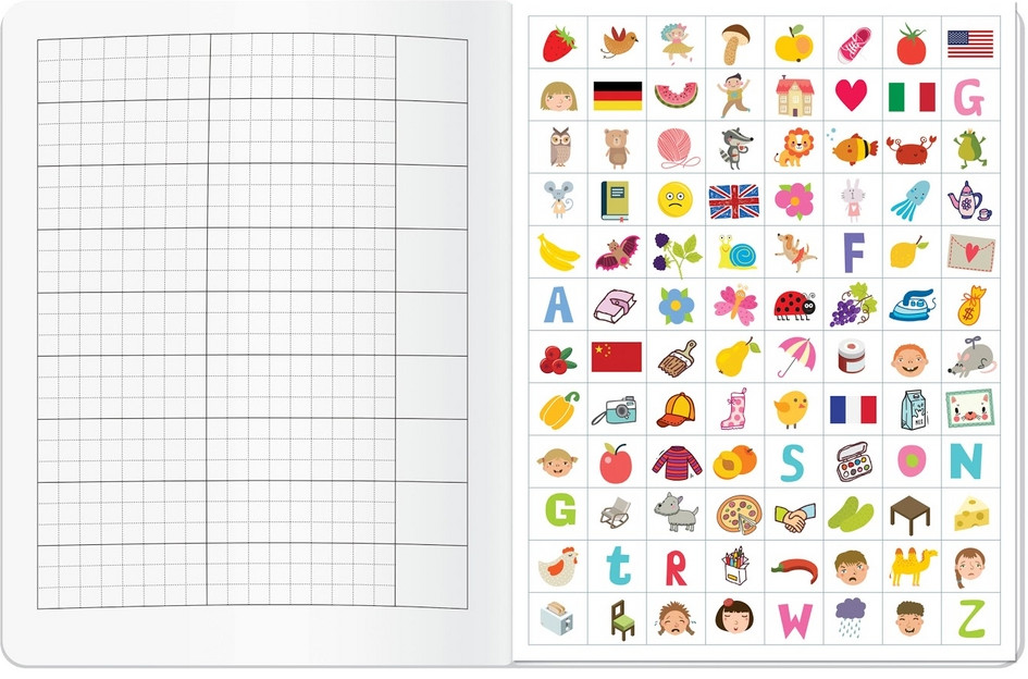 Ничего особенного. Обложка плотная глянцевая, листочки белые, особо много слов в эту тетрадь не напишешь, наклеек маловато, цена завышена.