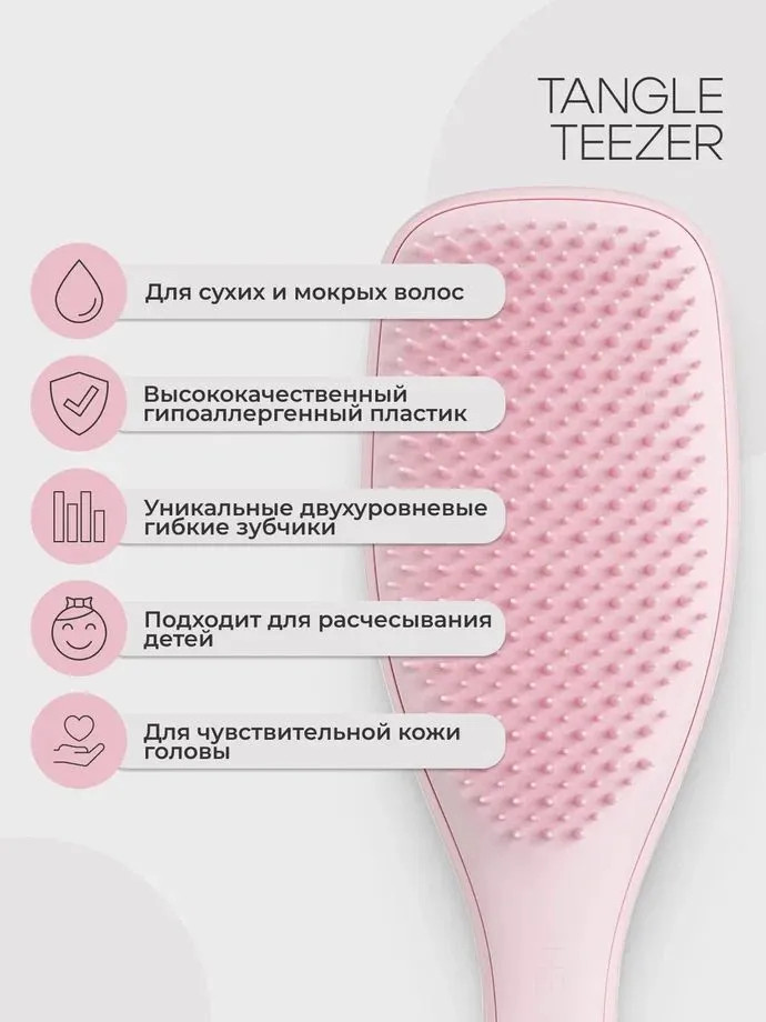 Как я раньше жила без этой расчески?! Долго сомневалась купить или не купить. Сначала купила маленькую с единорогами дочке, так как она всегда хныкала, что больно расчесывать волосы. Теперь дочь 7 лет сама расчесывается с удовольствием по 100 раз в день. А я заказала себе эту и маме с ручкой чуть поменьше. Кайфуем! Не знаю, как объяснить достоинства расчески)) Это тот случай, когда надо один раз попробовать!