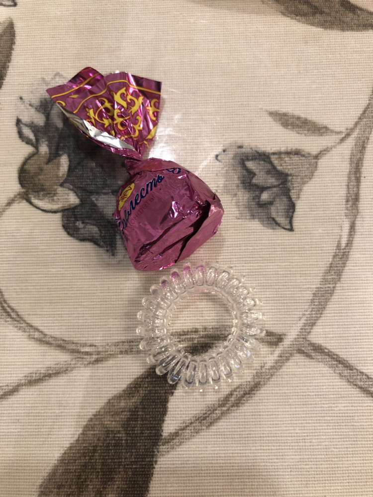 Хорошая резинка. Не травмирует волосы. Не стягивает кожу головы. Пластичная, хорошо держится.