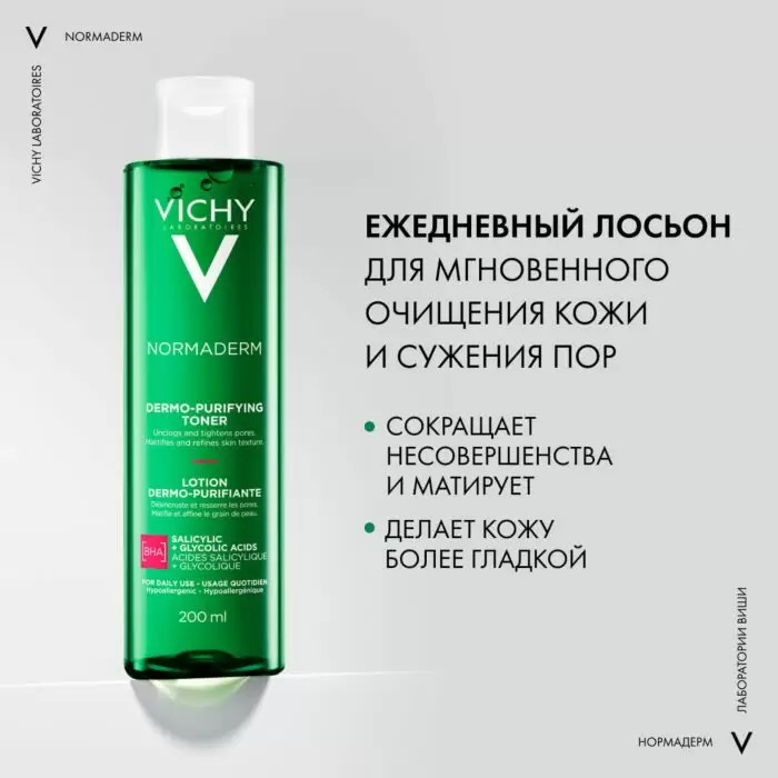 Vichy Normaderm Интенсивно очищающий лосьон для лица+403 сужает поры матирует очищает приятный запах сушит кожу раздражение