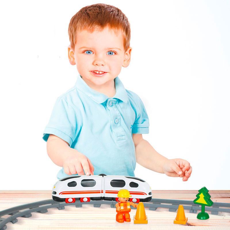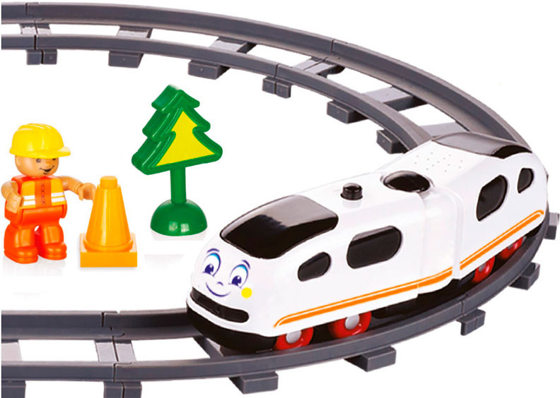 Bebelino Игровой набор «Скоростной поезд»В данный момент этот товар отсутствует в продаже. Возможно, у нас найдется аналогичный или похожий товар здесь. Первая железная дорога для малыша. При нажатии на кнопку поезд самостоятельно поедет по рельсам. При движении звучит гудок и играют мелодии. Благодаря удобным креплениям рельсы легко соединяются между собой. |