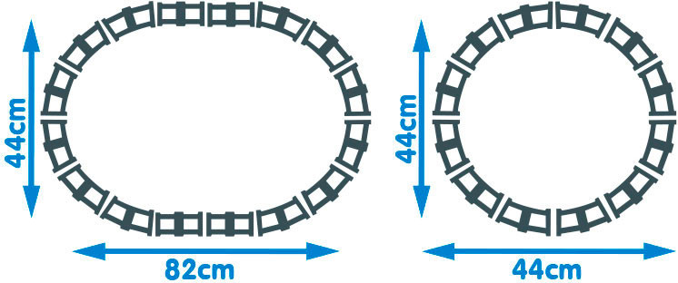 44 × 44 см (кольцо), 82 × 44 см (овал)