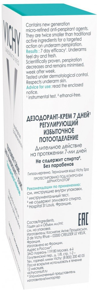 Vichy Дезодорант-крем 7 дней, регулирующий избыточное потоотделение+257 эффективная защита приятный аромат гипоаллергенно высокая цена