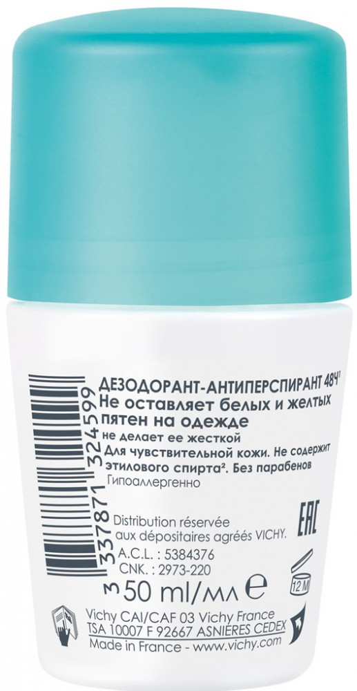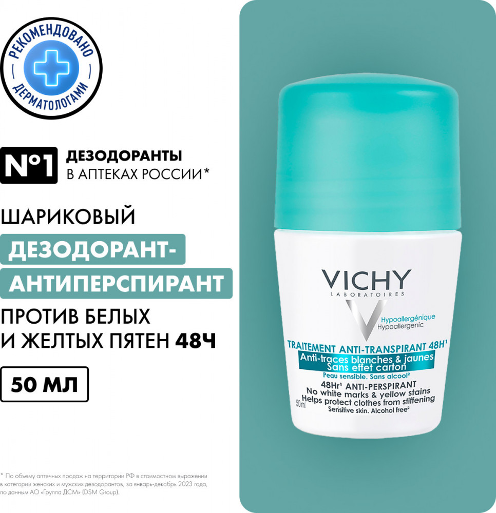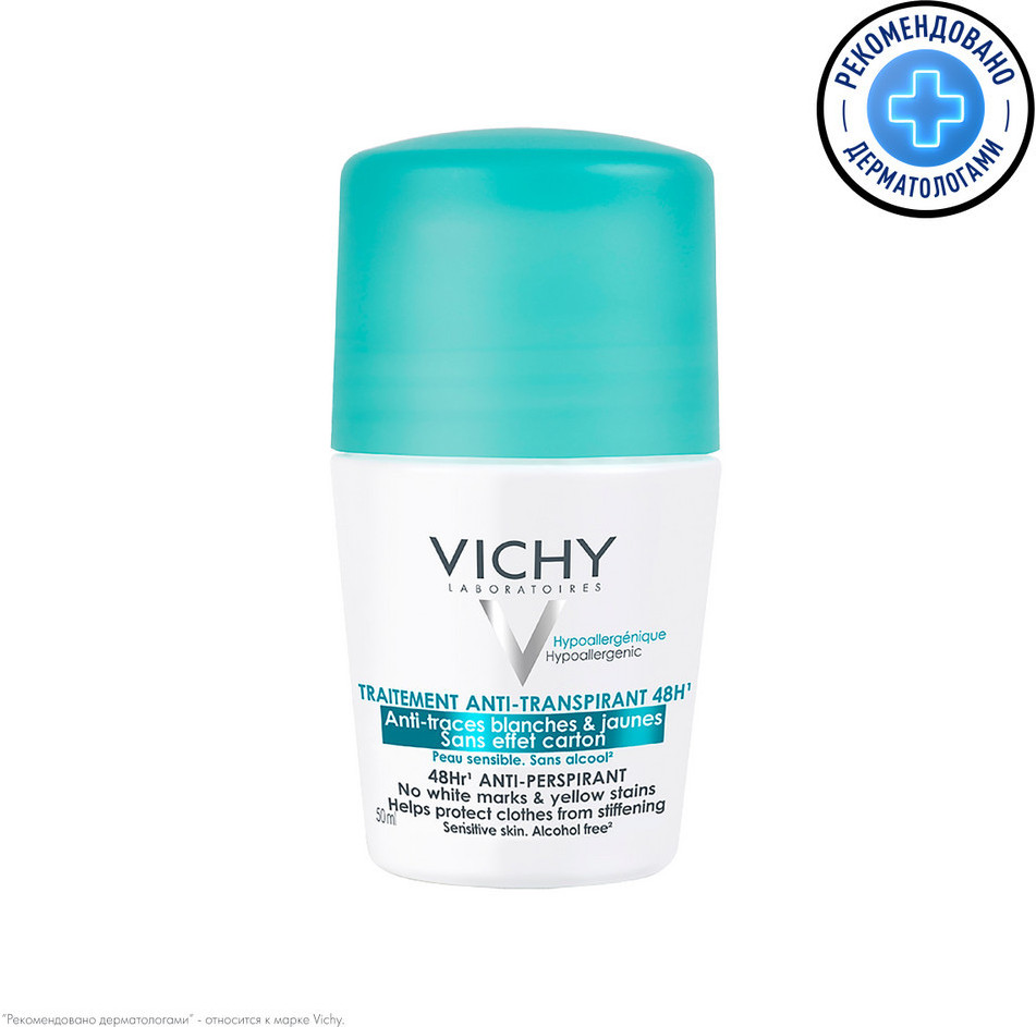 Vichy Шариковый дезодорант-антиперспирант против белых и желтых пятен 48 часов защиты+274 эффективная защита длительная защита приятный запах экономичный расход контроль влажности