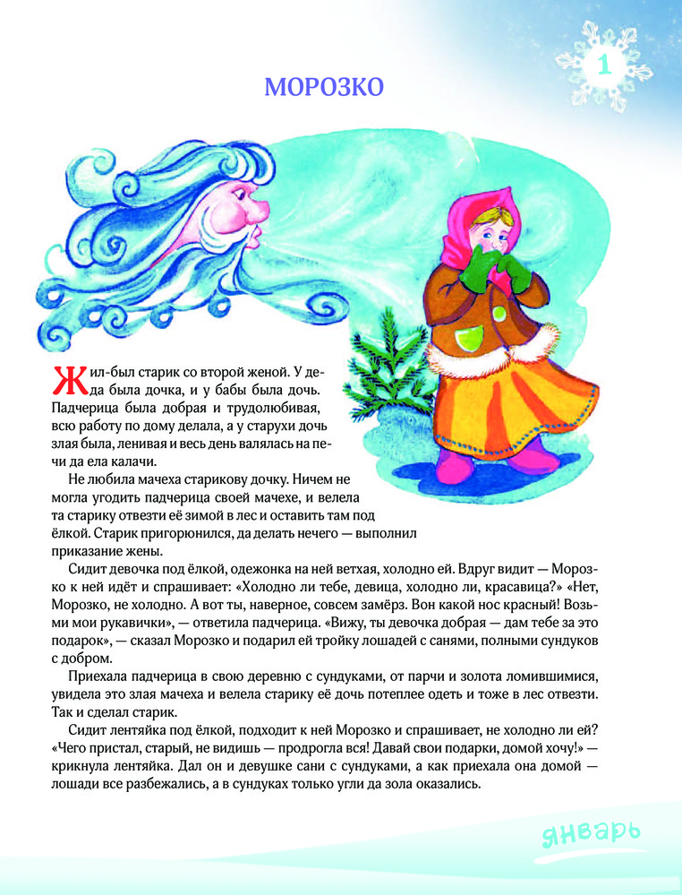 Сказки короткие, на одну страницу. Каждая соответствует времени года, на страницах написаны месяца. Доче 6 месяцев и для ее терпения самое то. Поучительные, есть смысл. Некоторые сказки мне не знакомы. Заказом довольна.