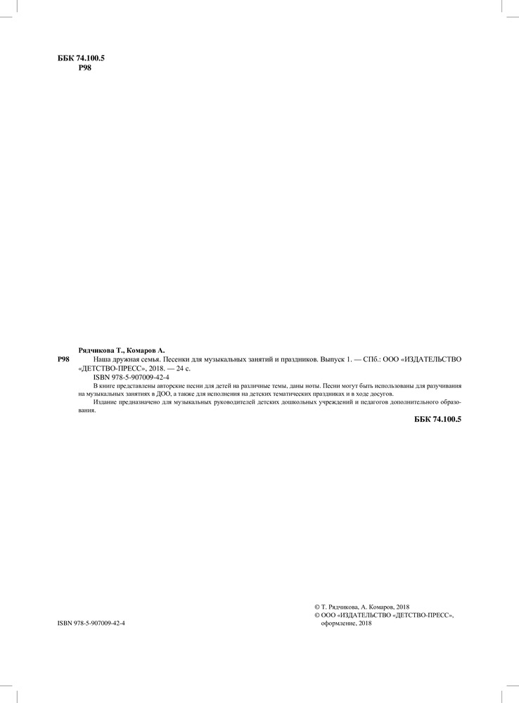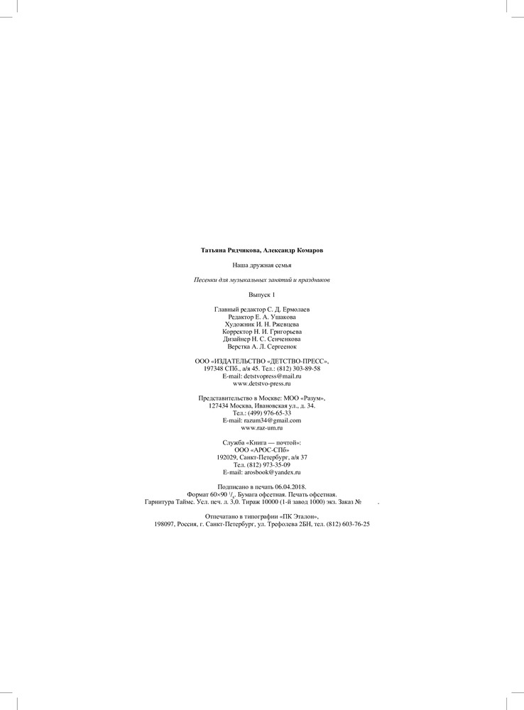 Наша дружная семья. Песенки для музыкальных занятий и праздников (5-7 лет). Выпуск 1Татьяна Рядчикова, Александр Комаров +52