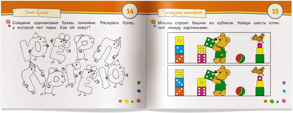 Этот сборник игр с картинками поможет ребёнку выучить цвета, научит сравнивать и поможет развить внимание. Малыш выполняет задания прямо в блокноте и легко усваивает новые знания. Занять ребёнка теперь просто, для игр нужны только карандаши или фломастеры. Такой блокнот — идеальный способ провести с пользой время в дороге или на природе.