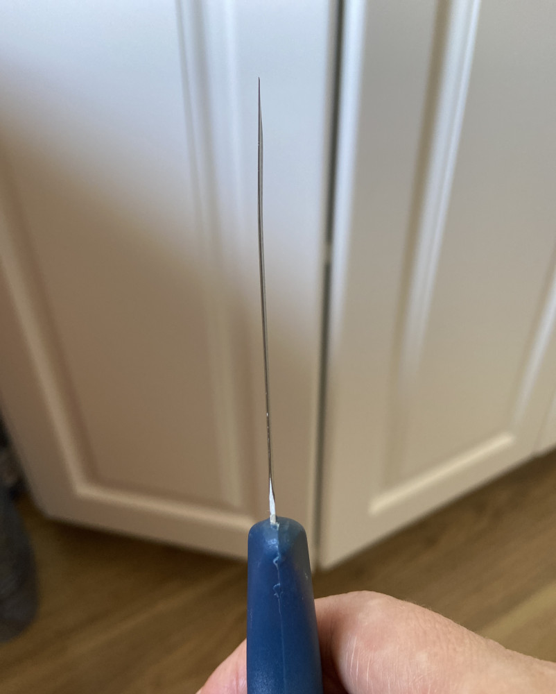 Неоднозначное впечатление осталось. Ожидала большего от этого ножика. Пользуюсь уже давно японским ножом из этой серии и очень довольна. А здесь сталь значительно тоньше, есть небольшие зазубрины на рукоятке. И ещё кончик лезвия почему-то слегка, буквально на 1,5 мм, загнут в сторону. Не думаю, что это задумка производителя.