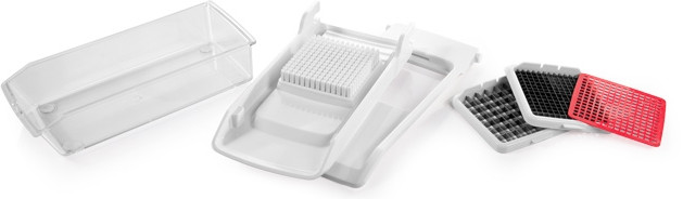 Tescoma Овощерезка (2 ножа)В данный момент этот товар отсутствует в продаже. Возможно, у нас найдется аналогичный или похожий товар здесь. Серия: Handy Легко и быстро нарежет свежие овощи и фрукты на маленькие и большие кубики и дольки. Подходит для нарезки моркови, картофеля, лука, петрушки, огурцов, свеклы, яблок, груши, нектаринов, персиков и т.д. В комплекте с удобным инструментом для очистки толкателя. Противоскользящая обработка. Оба ножа изготовлены из высококачественной нержавеющей стали, остальные части - из устойчивого прочного пластика. Можно мыть в посудомоечной машине. |