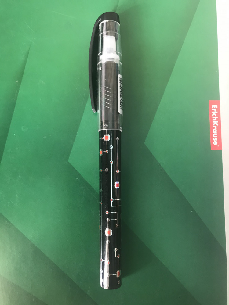 Это моя любимая ручка у Erich Krause. Обожаю как она пишет. Чернила быстросохнущие. Колпачок нужно закрывать - иначе кончик засохнет. Если это произошло - достаточно капнуть в маленькую емкость чуть-чуть спирта и обмакнуть туда пишущий кончик. Очень жаль что нет возможности заменить стержень.