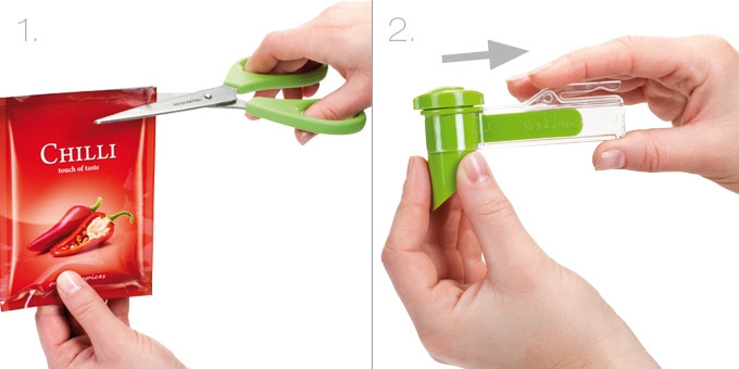 Tescoma Крышки-дозаторы для специй (6 шт.)В данный момент этот товар отсутствует в продаже. Возможно, у нас найдется аналогичный или похожий товар здесь. Серия: Season Отлично подходят для заправки блюд специями непосредственно из пакетика и закрывания пакетиков для хранения. Поставляются с 3 размерами отверстий для удобного дозирования крупных немолотых, мелких и молотых специй. Изготовлены из высококачественного прочного пластика. Можно мыть в посудомоечной машине. |