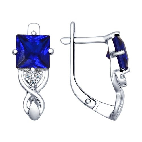 Серьги из серебра с бесцветными и синими фианитами | SOKOLOV