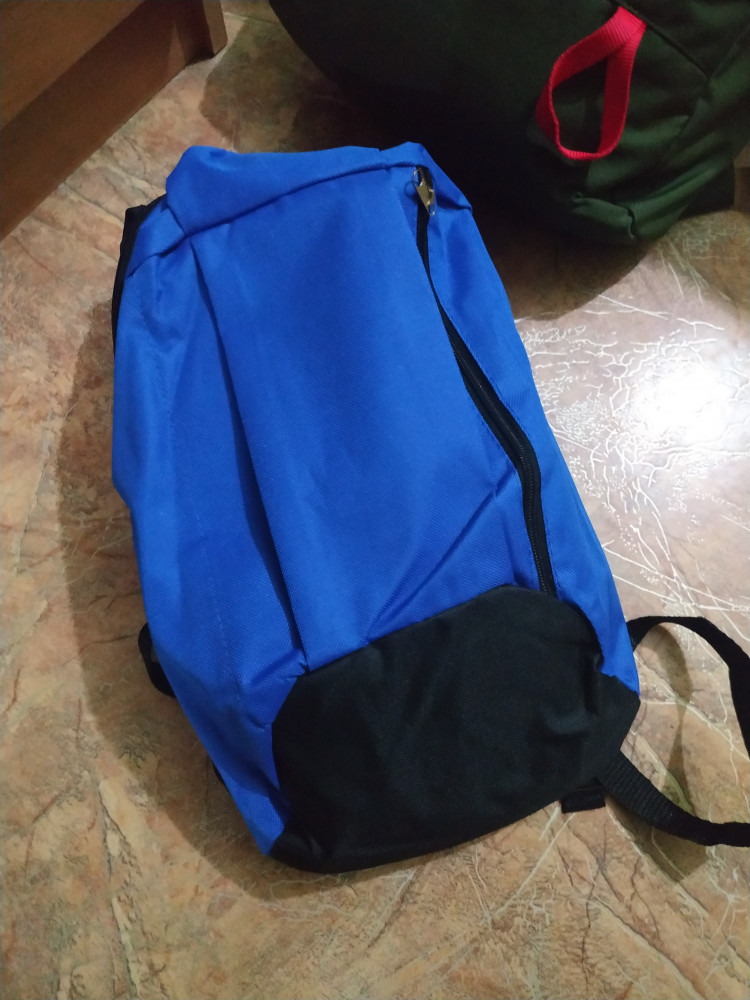 Рюкзак не большой, больше походит на сумку для обуви, узкий вытянутый и такой же по вместительности. Лямки не короткие и не слишком длинные. Материал непонятный, внутри клеенчатой основы нет, запах спецефичный и не выветриваеться. В принципе, за такие деньги сложно что то другое ожидать.