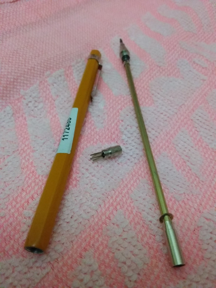 Очень качественный карандаш, точилка выкручивается, и очень неплохо точит стержень, место соединения металическое покрытое пластиком и видимо лаком, стержень вставлен в металическую сердцевину. Просто восторг испытываю от таких недорогих , но качественных вещей. Советую.