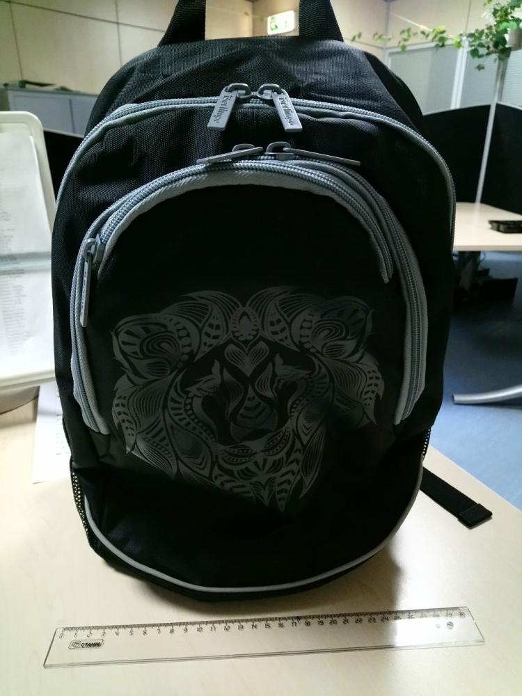 Несмотря на с виду маленький размер рюкзака, вместительность отличная. Все швы выполнены грамотно, молнии отличного качества, лямки достаточно широкие. Два внешних сетчатых кармана, один малый внешний на молнии, одно отделение среднего размера с внутренними кармашками (три для ручек или карандашей, два, наверное, для телефона или ещё чего-нибудь), одно большое отделение с двумя карманами, один внешний карман внизу спинки. Светоотражающие элементы на лямках и с внешней стороны рюкзака.