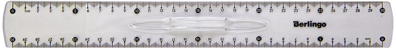 Линейка пластиковая, 30 см, безопасные закругленные края, эргономичный держатель, высококачественная градуировка с использованием УФ-чернил. Две шкалы.