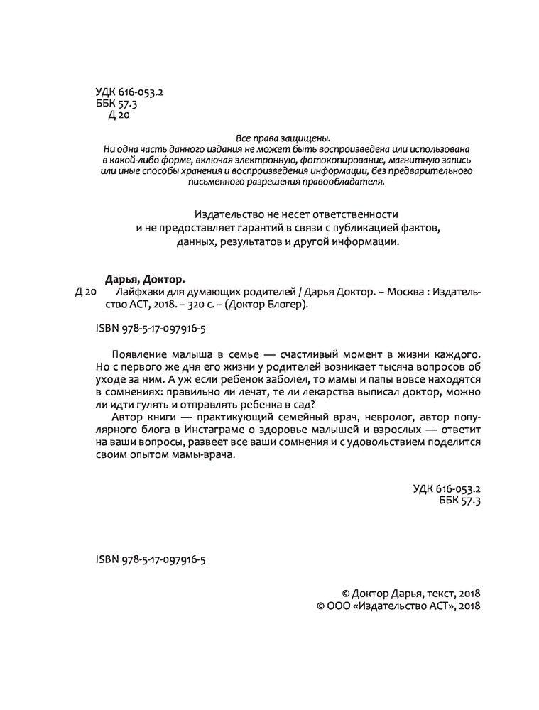 Лайфхаки для думающих родителейВ данный момент этот товар отсутствует в продаже. Возможно, у нас найдется аналогичный или похожий товар здесь. Серия: Доктор блогер Появление малыша в семье — счастливый момент в жизни каждого. Но с первого же дня его жизни у родителей возникает тысяча вопросов об уходе за ним. А уж если ребенок заболел, то мамы и папы вовсе находятся в сомнениях: правильно ли лечат, те ли лекарства выписал доктор, можно ли идти гулять и отправлять ребенка в сад? Автор книги — практикующий семейный врач, невролог, автор популярного блога в Инстаграме о здоровье малышей и взрослых — ответит на ваши вопросы, развеет все ваши сомнения и с удовольствием поделится своим опытом мамы-врача. |