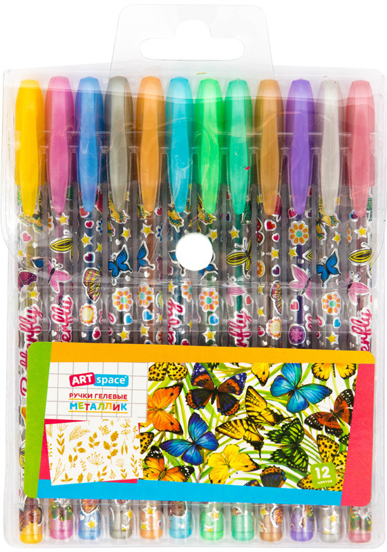 ArtSpace Набор гелевых ручек (12 цветов, металлик)В данный момент этот товар отсутствует в продаже. Возможно, у нас найдется аналогичный или похожий товар здесь. Серия: Бабочки Набор гелевых ручек ArtSpace отлично подойдет для оформления конспектов и других текстов, а также альбомов, дневников и открыток. Ручка имеет пишущий узел толщиной 1 миллиметр, который оставляет на бумаге след в 0,8 миллиметра. Корпус изделий выполнен из прозрачного пластика, украшенного цветными изображениями, колпачок соответствует цвету чернил. |