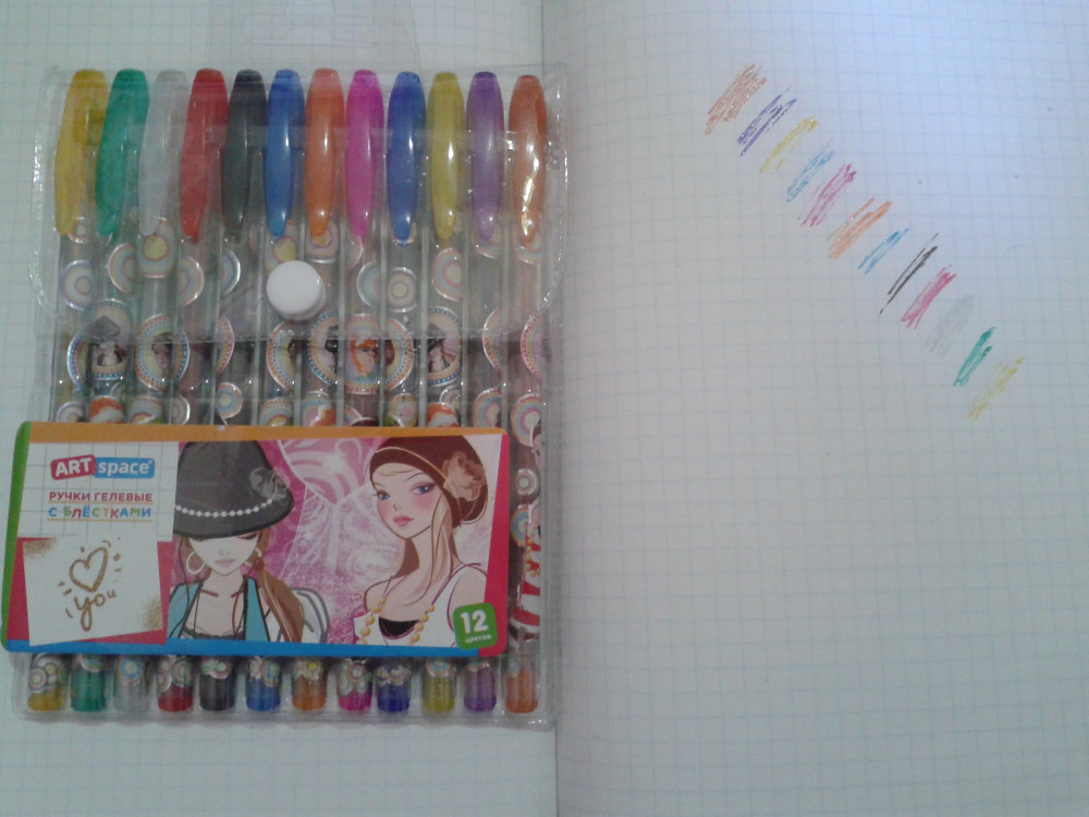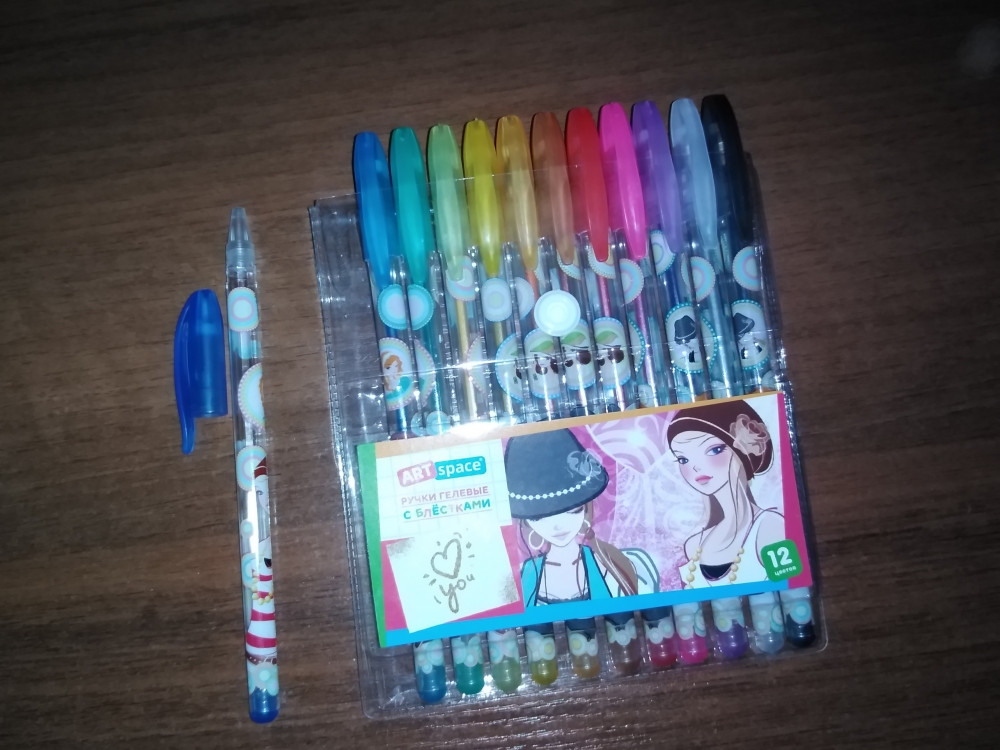 Отличный набор ручек, гелевые, яркие, да еще и с блестками и цена приятная. Я в восторге!