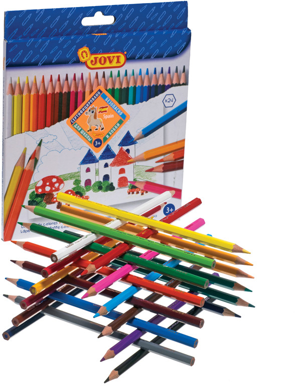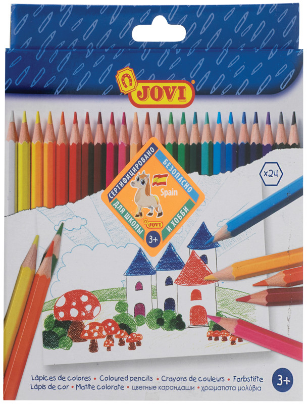 JOVI Карандаши цветные (24 цвета)В данный момент этот товар отсутствует в продаже. Возможно, у нас найдется аналогичный или похожий товар здесь. Шестигранные деревянные карандаши толщиной 7,5 мм, длиной 175 мм. Цветные карандаши в деревянном корпусе. Грифель приклеен к деревянному корпусу, что предохраняет его от поломок при падении. Рисуют на бумаге, ватмане, картоне. |