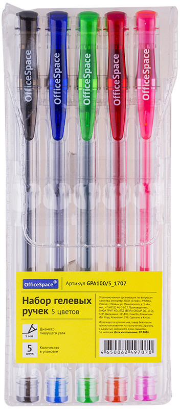 OfficeSpace Набор гелевых ручек (5 цветов)-25% +15 яркие цвета хорошо пишут качество цена