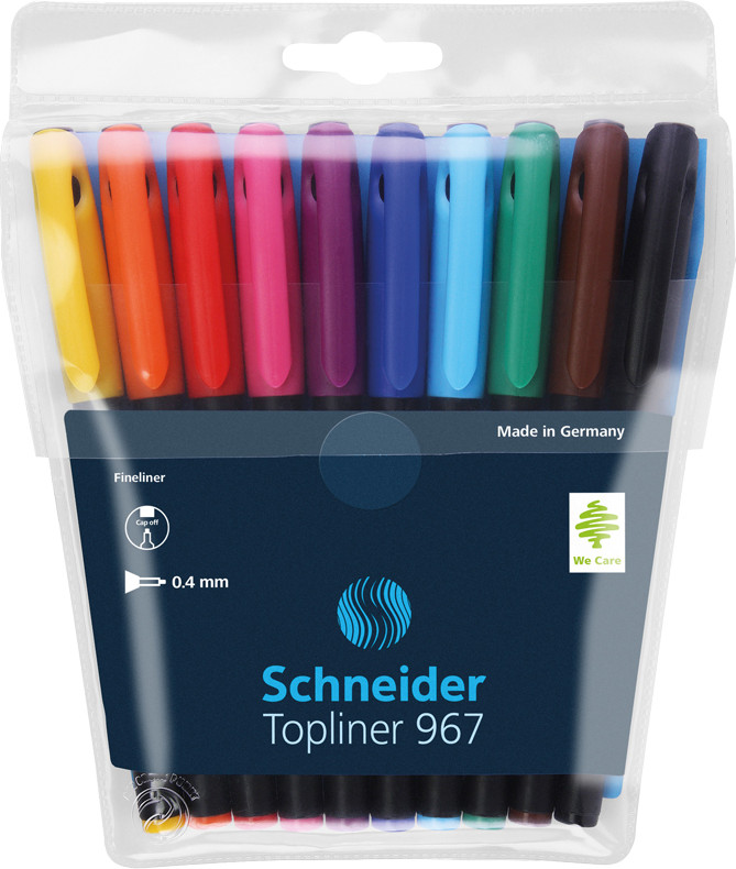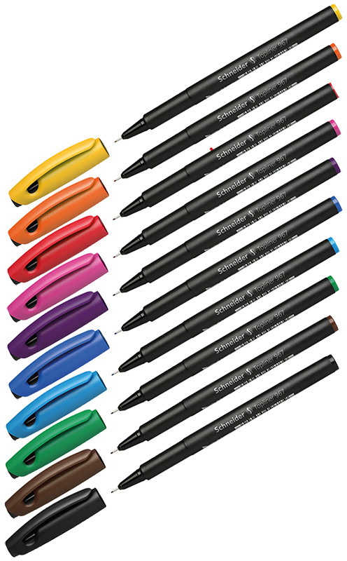 Schneider Набор капиллярных ручек (10 цветов)линеры качество цвета В данный момент этот товар отсутствует в продаже. Возможно, у нас найдется аналогичный или похожий товар здесь. Серия: Topliner 967 Набор ручек-линеров, 10 цветов: желтый, оранжевый, красный, розовый, фиолетовый, синий, светло-синий, зеленый, коричневый, черный. Корпус ручки на 88% состоит из пластмассы на основе биосырья. Прочный, обрамленный металлом наконечник дает толщину линии письма 0,4 мм. |