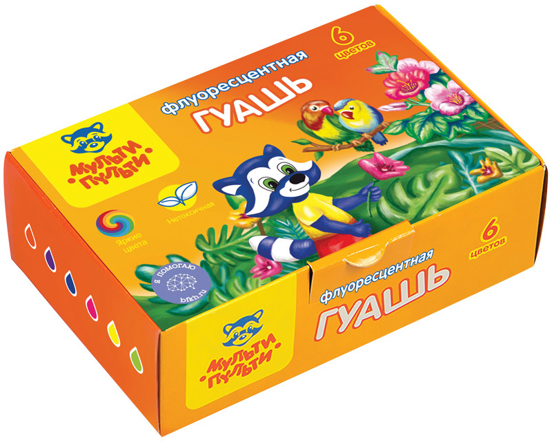 Гуашь предназначена для детского творчества, выполнения художественно-декоративных и оформительских работ. Краска находится в пластиковых баночках с плотно завинчивающейся крышкой. Краски подходят для рисования по бумаге, картону, дереву, стеклу, керамике. Яркость цветов сохраняется при высыхании краски.