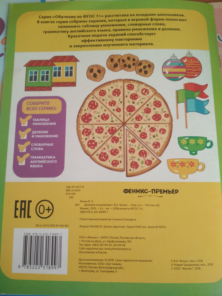 Деление и умножениеВ данный момент этот товар отсутствует в продаже. Возможно, у нас найдется аналогичный или похожий товар здесь. Серия: Обучение по ФГОС 7+ Серия «Обучение по ФГОС 7+» рассчитана на младших школьников. В книгах серии собраны задания, которые в игровой форме помогают запомнить таблицу умножения, словарные слова, грамматику английского языка, правила умножения и деления. Красочная подача заданий способствует эффективному повторению и закреплению изученного материала. |