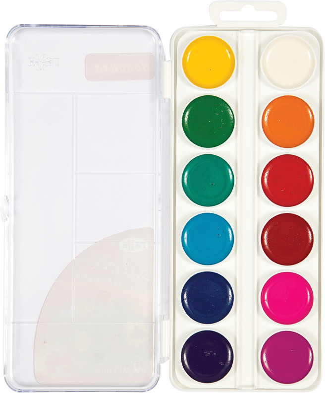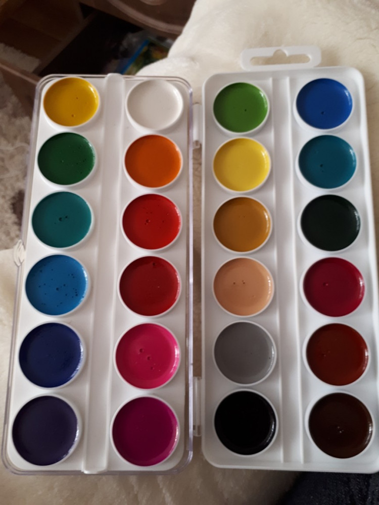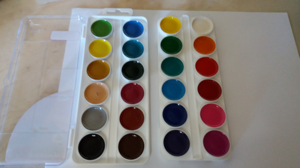 Акварель замечательная! Мы уже подобную покупали. Моему ребенку очень нравится, что в одной упаковке есть две секции с красками, что позволяет рисунки сделать более красочными и яркими. Футляр занимает мало места в рюкзаке. В каждом секторе есть желобок для кисти, что также очень удобно, так как можно положить сразу две кисти разных размеров по толщине.