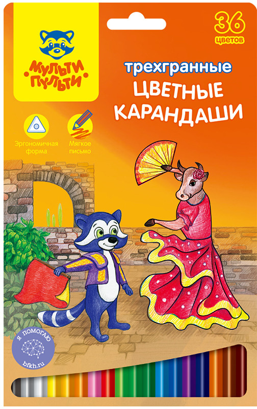 Мульти-Пульти Карандаши цветные (36 цветов)-20% +48 мягкий грифель яркие цвета трёхгранная форма хорошо точатся