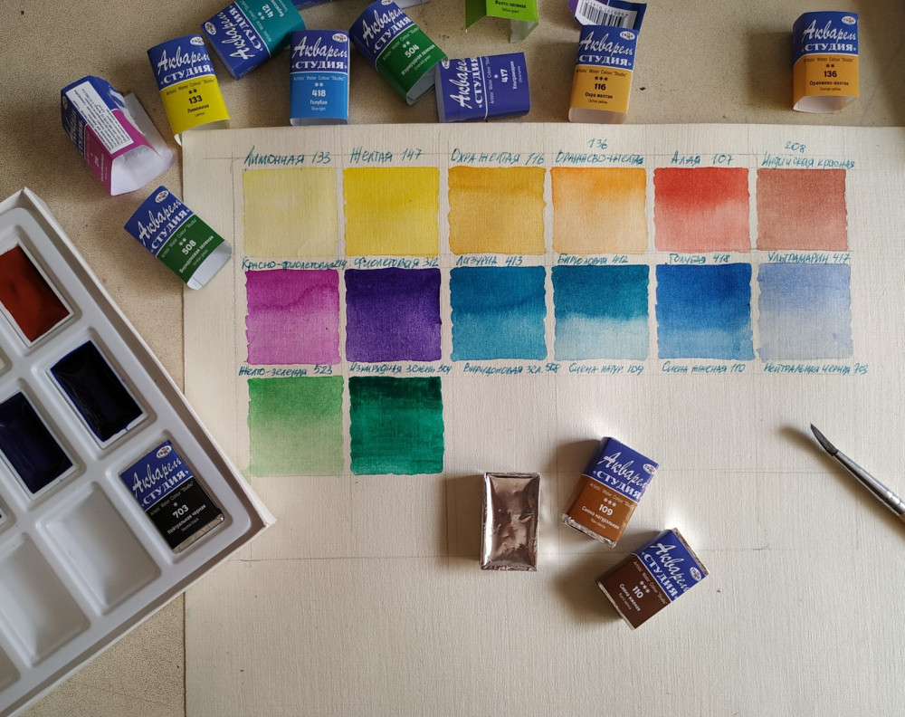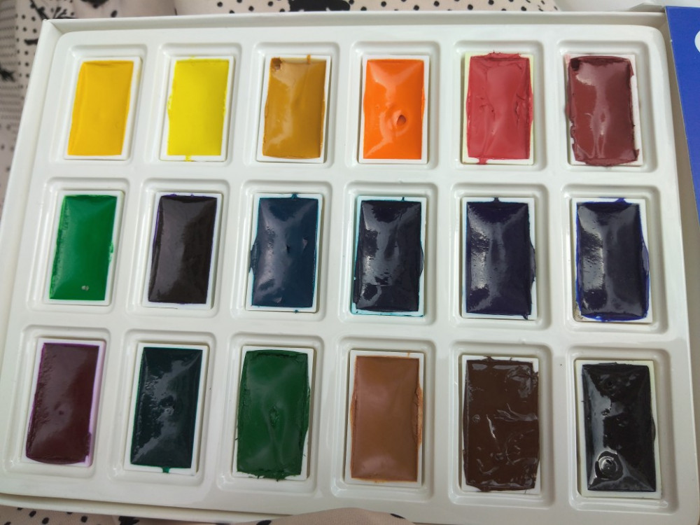 акварель хорошая, но в тюбиках мало краски, такие цвета как синий, голубой, фиолетовый разобрать сложно они всё чёрные, но когда рисуешь даёт цвета. а так очень хорошие))))