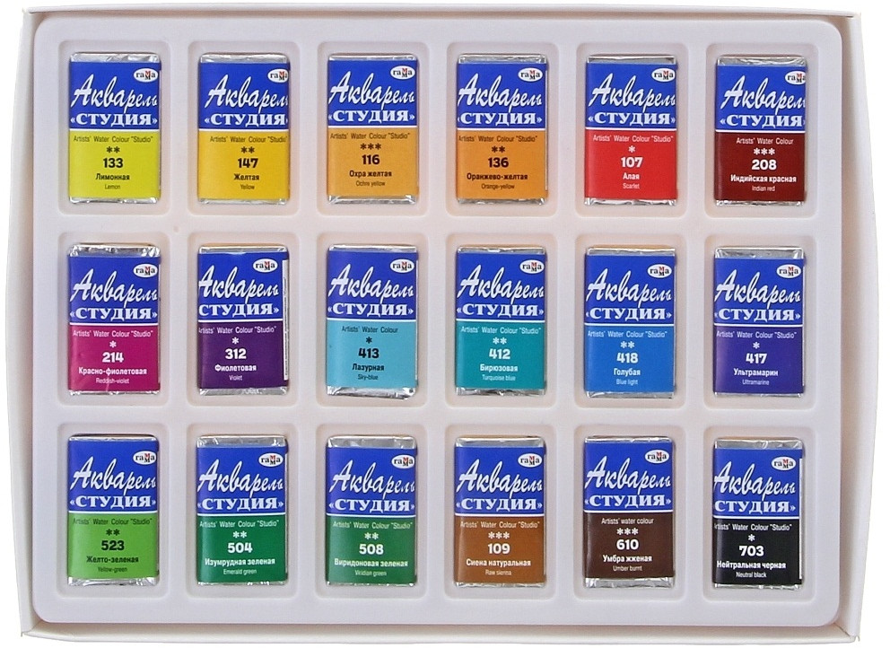 Гамма Акварель художественная (кюветы, 18 цветов)-20% +110 яркие цвета хорошо ложатся для детей