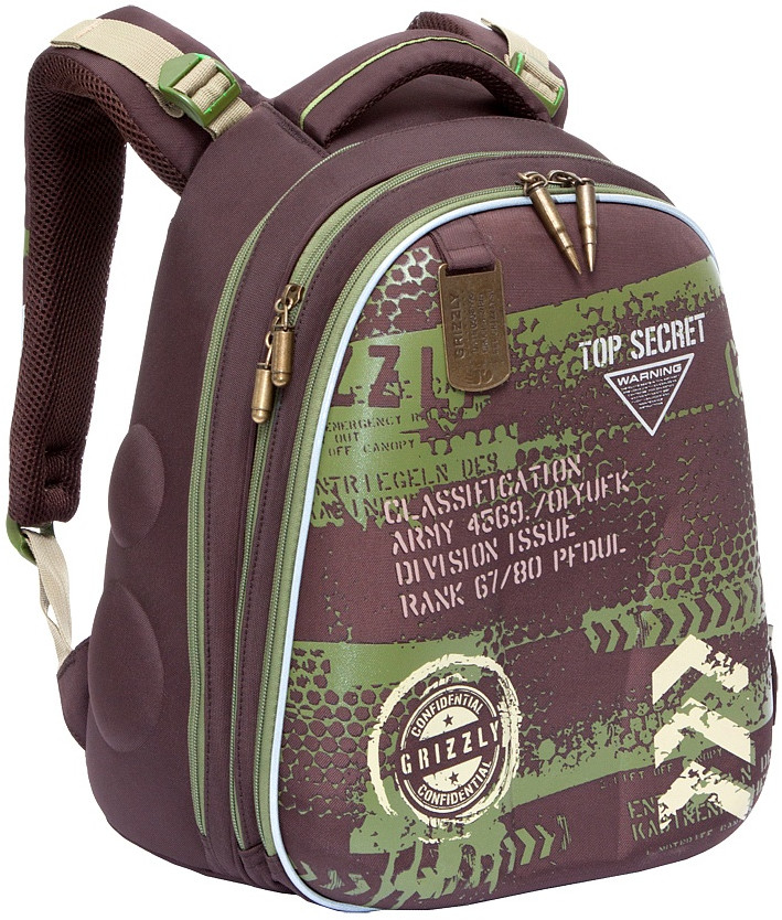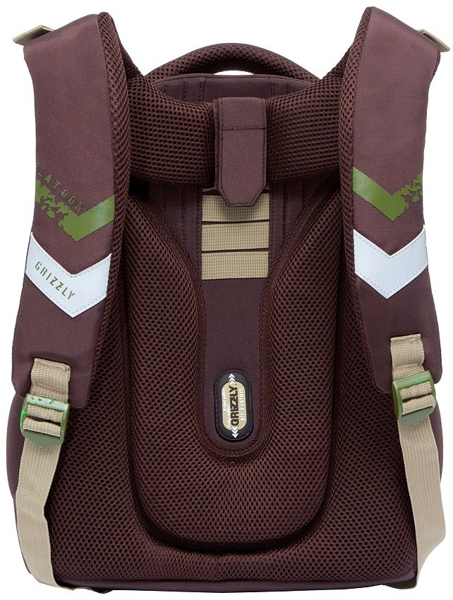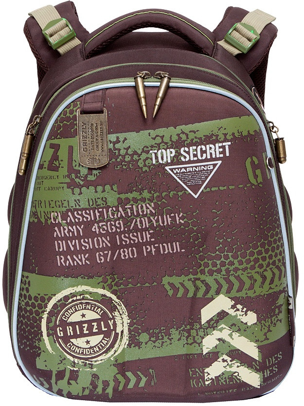Рюкзак «Grizzly» выполнен из прочного материала. Содержит три вместительных отделения (внутренний карман-пенал для карандашей, разделительная перегородка-органайзер). Отделения закрываются на застежки-молнии с двумя бегунками.