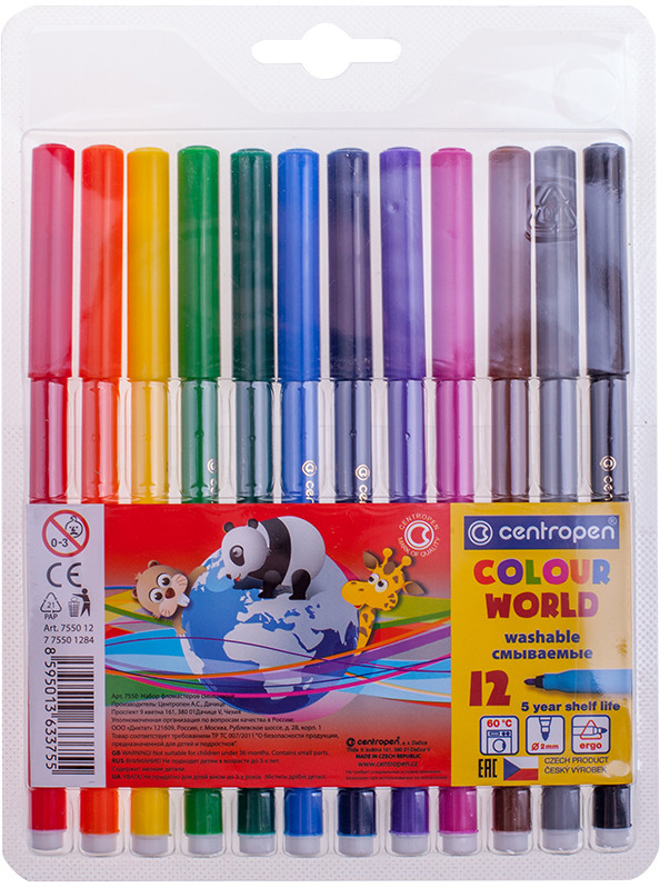Centropen Фломастеры трехгранные (смываемые, 12 цветов)-20% +46