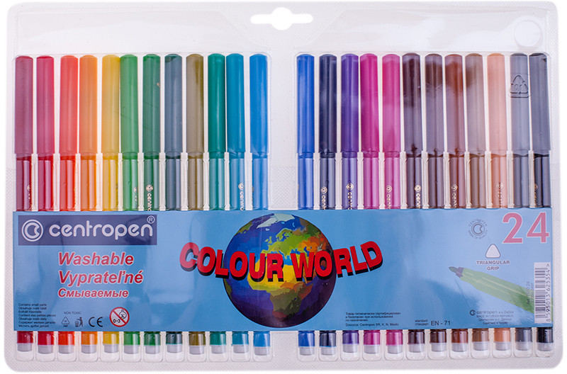Centropen Фломастеры трехгранные (смываемые, 24 цвета)-20% +90