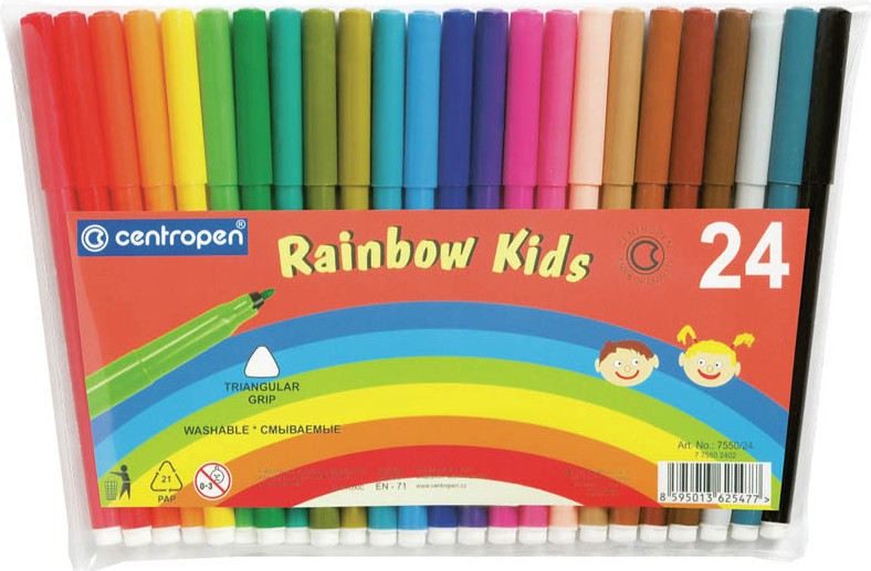 Centropen Фломастеры трехгранные (смываемые, 24 цвета)В данный момент этот товар отсутствует в продаже. Возможно, у нас найдется аналогичный или похожий товар здесь. Серия: Rainbow Kids Цветные фломастеры. Эргономичная зона обхвата. Безопасные для здоровья чернила, не высыхают в течение 5 лет, смываемые, вентилируемый колпачок. Цилиндрический пишущий узел, устойчивый к вдавливанию. |