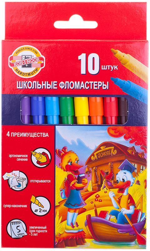 Koh-I-Noor Фломастеры трехгранные (смываемые, 10 цветов)В данный момент этот товар отсутствует в продаже. Возможно, у нас найдется аналогичный или похожий товар здесь. Серия: Утята Качественные фломастеры с чернилами на водной основе с добавлением пищевых красителей. Фломастеры с эргономичной трехгранной зоной обхвата. Отстирываются с большинства тканей. |